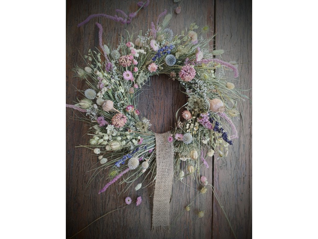 Large wreath in pink tones. A wild and airy wreath made of dried grasses and flowersin soft pink shades. Crafted with attention to detail to bring tenderness, romance and the unique charm of nature into your home.